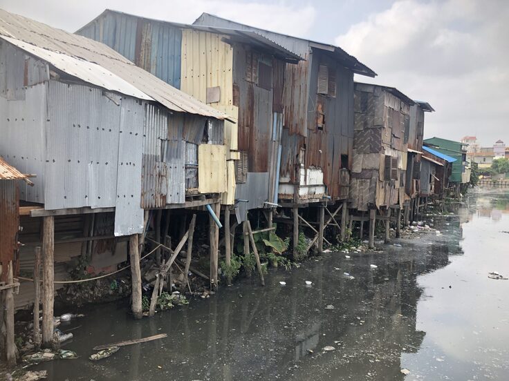 - 実際に、首都プノンペンにも未だに200を超えるスラム街があるといわれています。私の支援するYouth Advanced Deveropmentというスラムの子どもたちを支援する団体の指導教室の道路を隔てた反対側に、巨大なショッピングモールが経っているのを見るにつけ、カンボジアの光と影を見ている思いがしています。