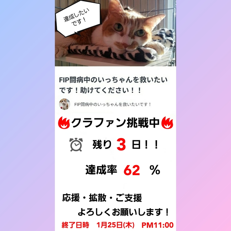 猫伝染性腹膜炎を患ったポンちゃんの明日をつないで頂けないでしょうか