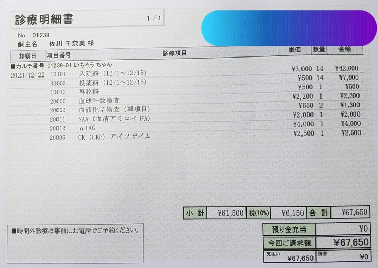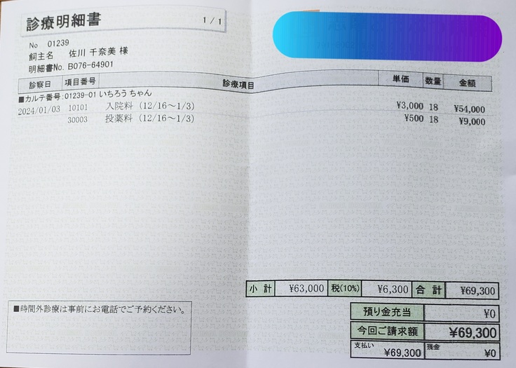 1月1日~1月24日までのお預かり・検査代は、明日お支払します。予定金額96800円