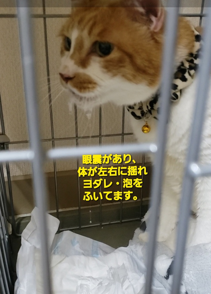 いっちゃん、昨日の夕方くらいから眼震があり、体も左右に揺れ、立つこともできず、呼吸も苦しそうです。