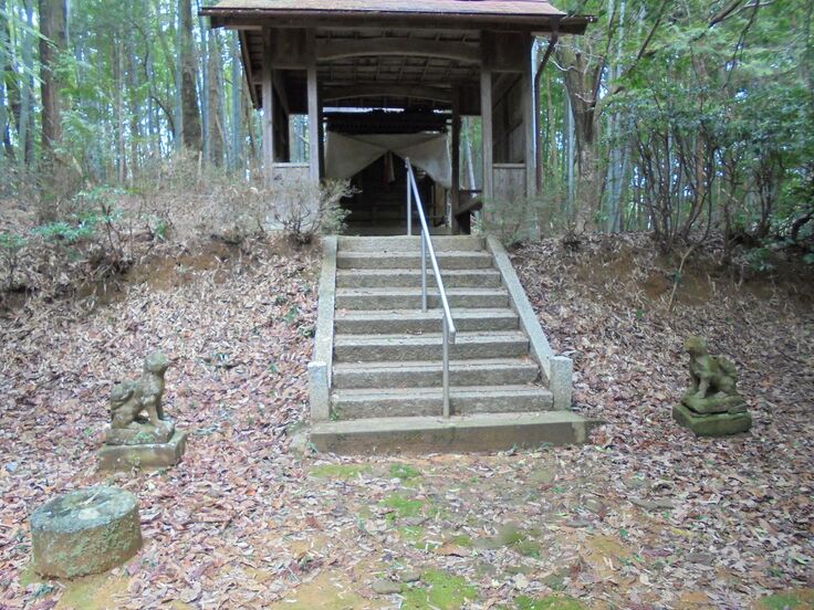 神社本殿への石段と狛犬