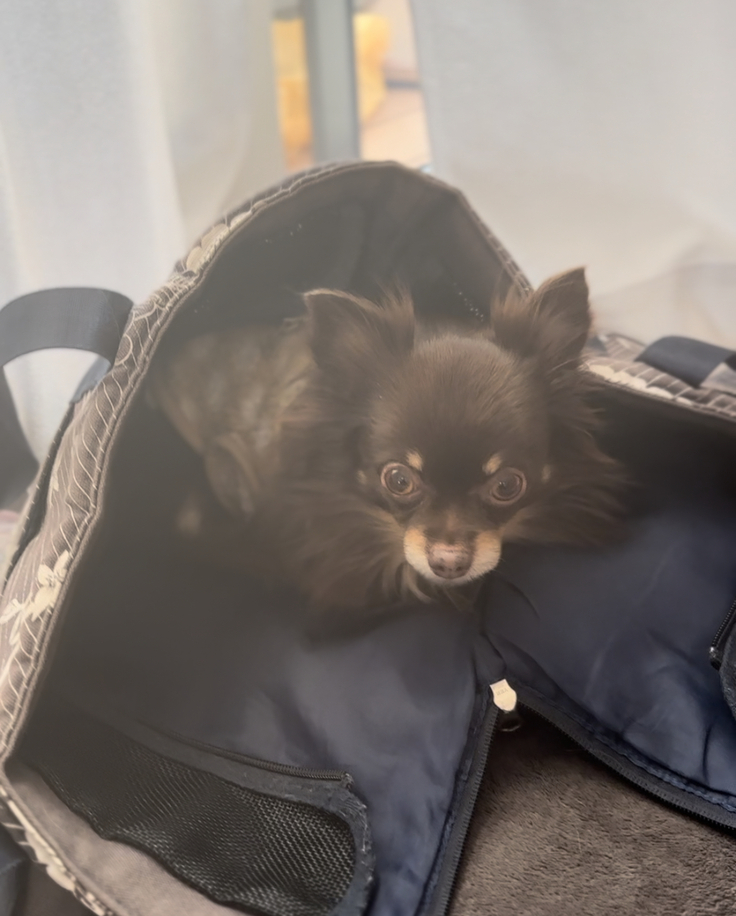 今日のクレアはお天気もいいし、そんなに寒くもないのに、時々咳をして、ずっとバッグにこもってなんだかキツそうです😢