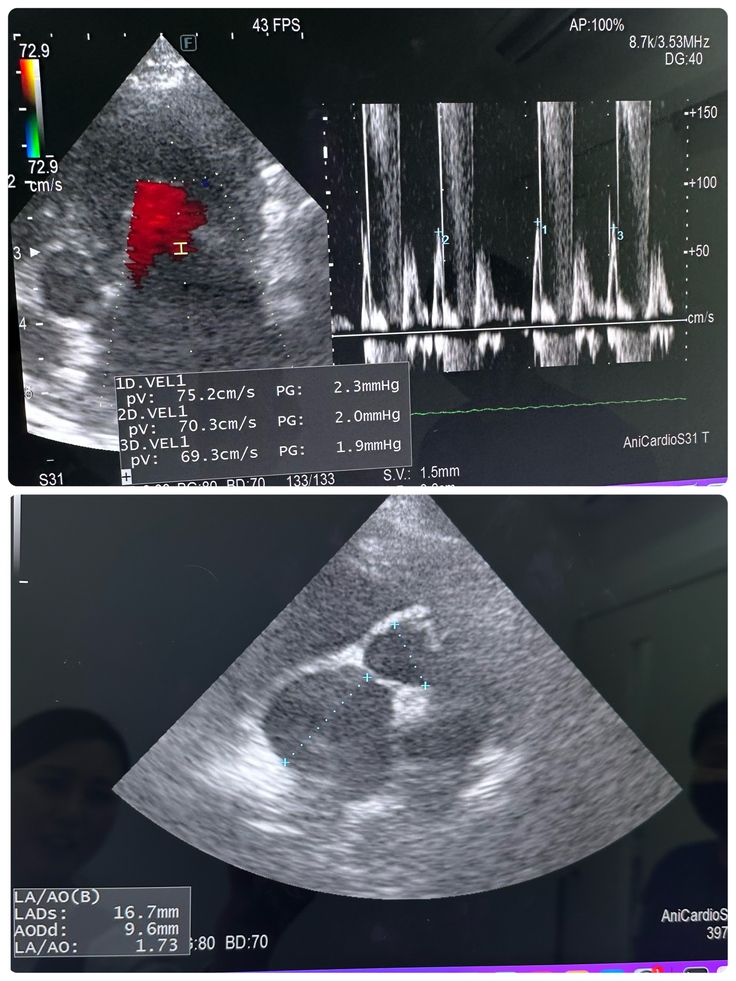特に心臓内の血液の逆流量を表すE波は病気になっていない通常の状態の平均値は(正常<0.9m/sec)なんですが、クレアは安定するまで常に1m〜1.2m/secでいつ肺水腫になってもおかしくない、もしくは少し肺水腫の状態でしたが、今日は0.75m/secと大変安定しています😭✨