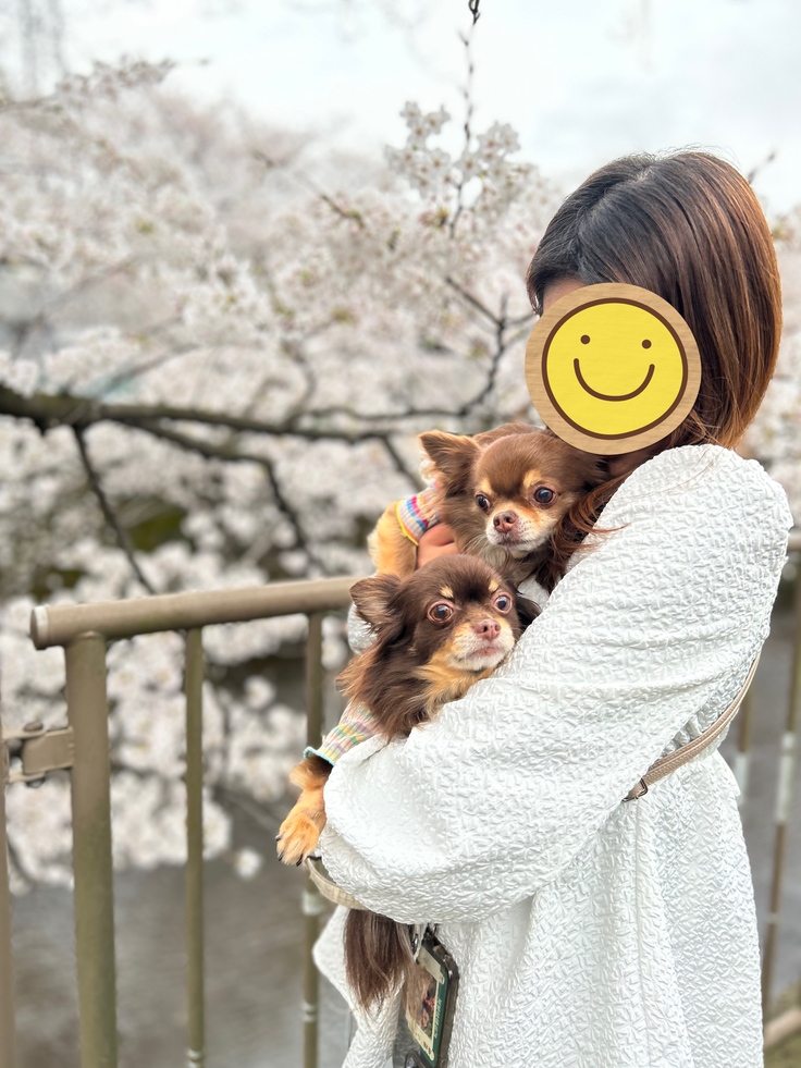 そして今日はまだ一緒にお散歩はいけないものの、桜を一緒に見ることが出来ました✨