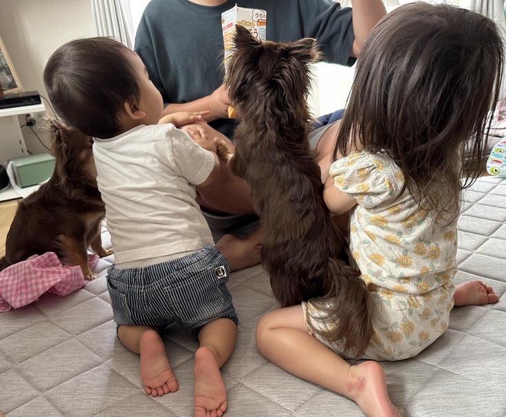 ユウも変わった様子は特になく食欲も旺盛で、最近は息子が泣くと遠吠えが始まりユウなりにあやしてくれているようです😂
