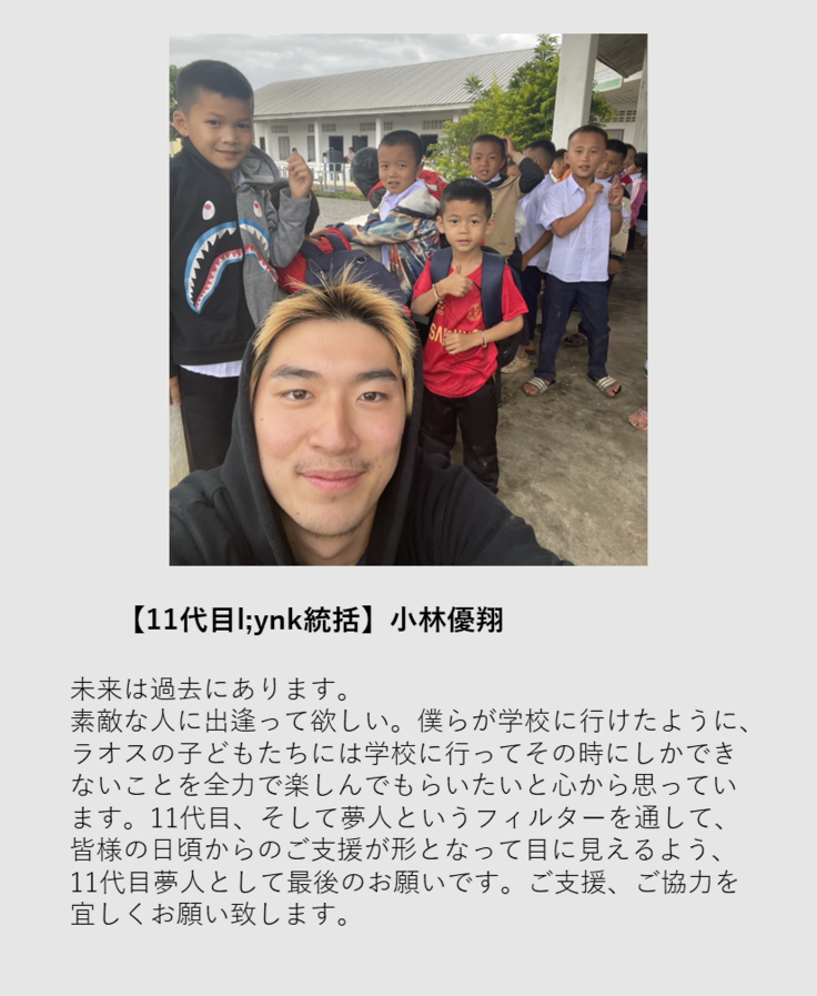 こんにちは! 学生団体「夢人-yumenchu-」です!! 夢人は、東南アジアの<ラオス人民民主共和国>における国際教育支援団体です。 2011年10月に「何か大きなことがしたい」という熱い想いによって結成され、現在、首都圏の学生を中心とする約150人のメンバーによって構成されています。