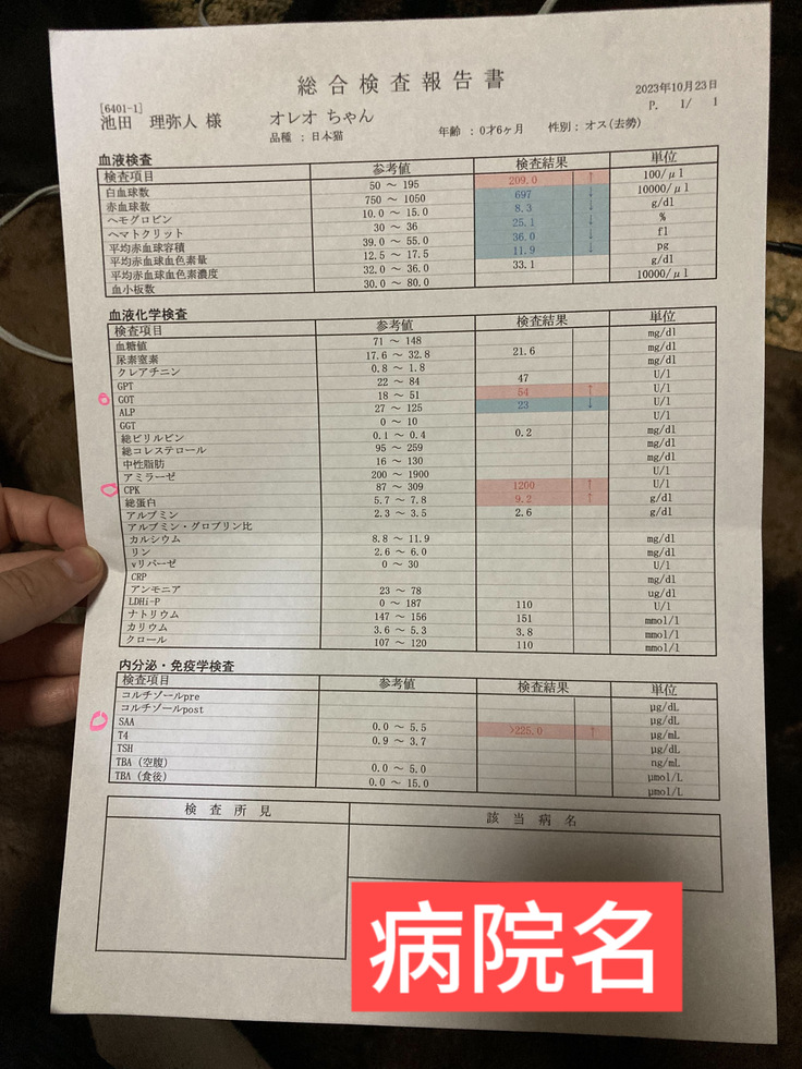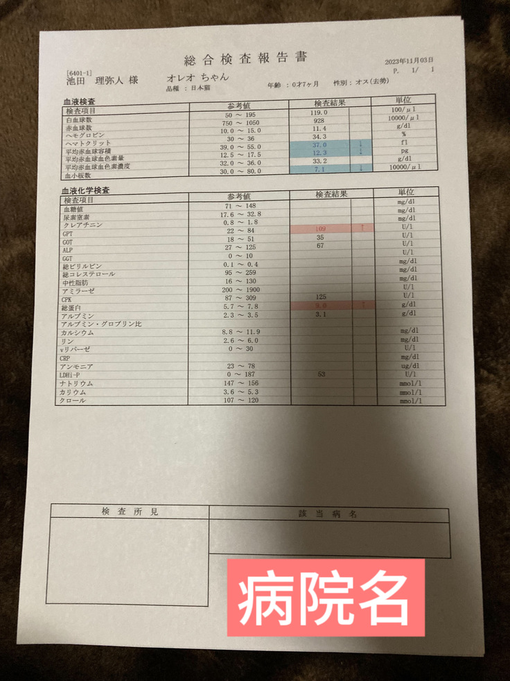 ※受診したのが夫なので、飼い主名が夫の名前になっております。