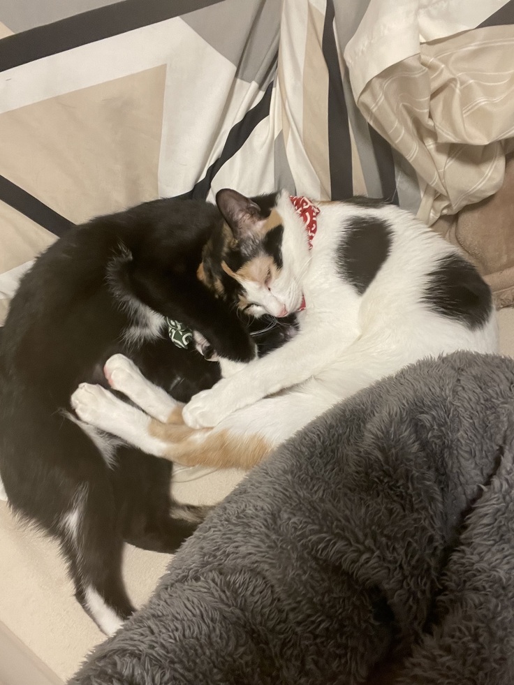 まだまだお疲れの様子のオレオからピッタリ離れず寄り添う妹リッツ