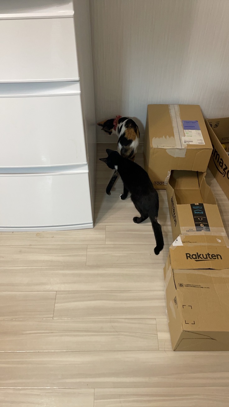 2人して冷蔵庫の裏の確認中...。