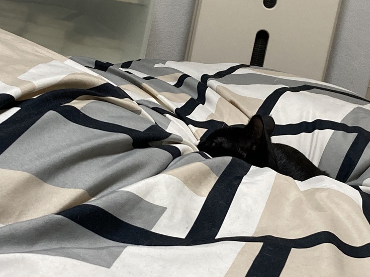 お布団の上に隠れているつもりのカモフラージュオレオ