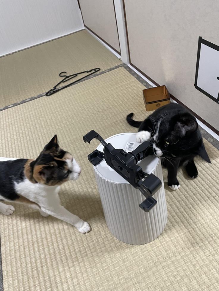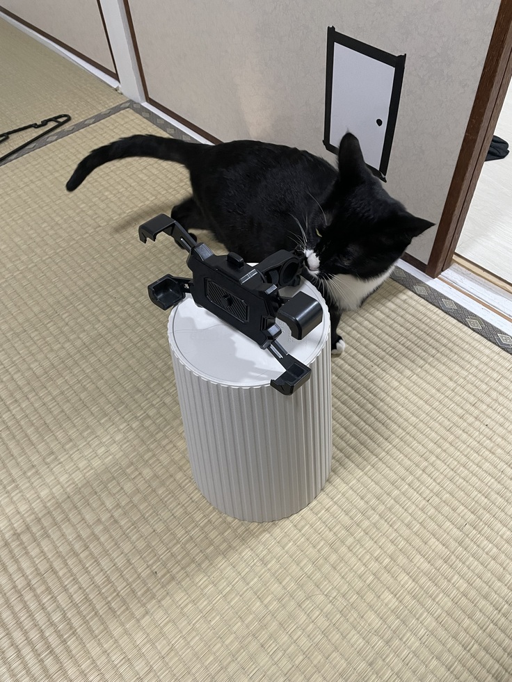 カメラ担当オレオにスマホスタンドの角度の調整をお願いした時の姿。