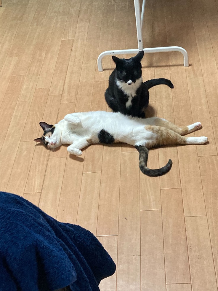 洗い物やお洗濯をしている所へやって来ては、足に顔をスリスリしてきたり、常に視界に入るように寝転んでいたりと甘えんぼなのですが。