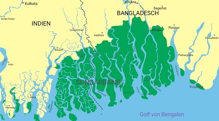 インドとバングラデシュにまたがり、国立公園を有し、1997年にはインドで世界遺産に登録されました。