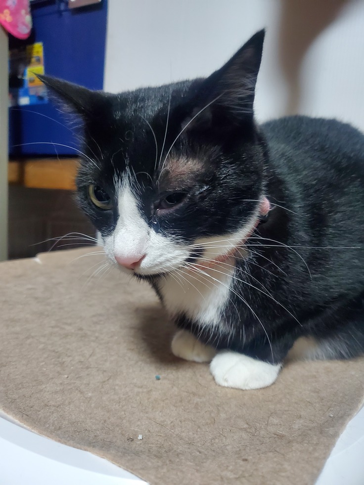 左目が痛そうで 常備薬で置いてる抗生剤飲まして 目薬しました。予備で少ないので 明日 仕事の帰り お薬もらって来ます。