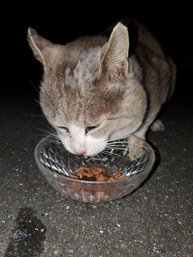 昨夜は また 一段と冷えて風もキツかったんで 猫達と会えずでした。今日は 風がない分寒さもマシで 全員ではないですが 来てくれました。寒いのも辛いやろうけど お腹満たされたら 少しでもマシかな……