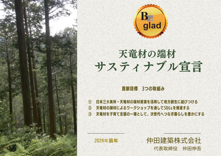 そこで私たちは、辰年の2024年に「天竜材の端材サスティナブル宣言」とし、下記の3つの取り組みを推進していきたいと思います。