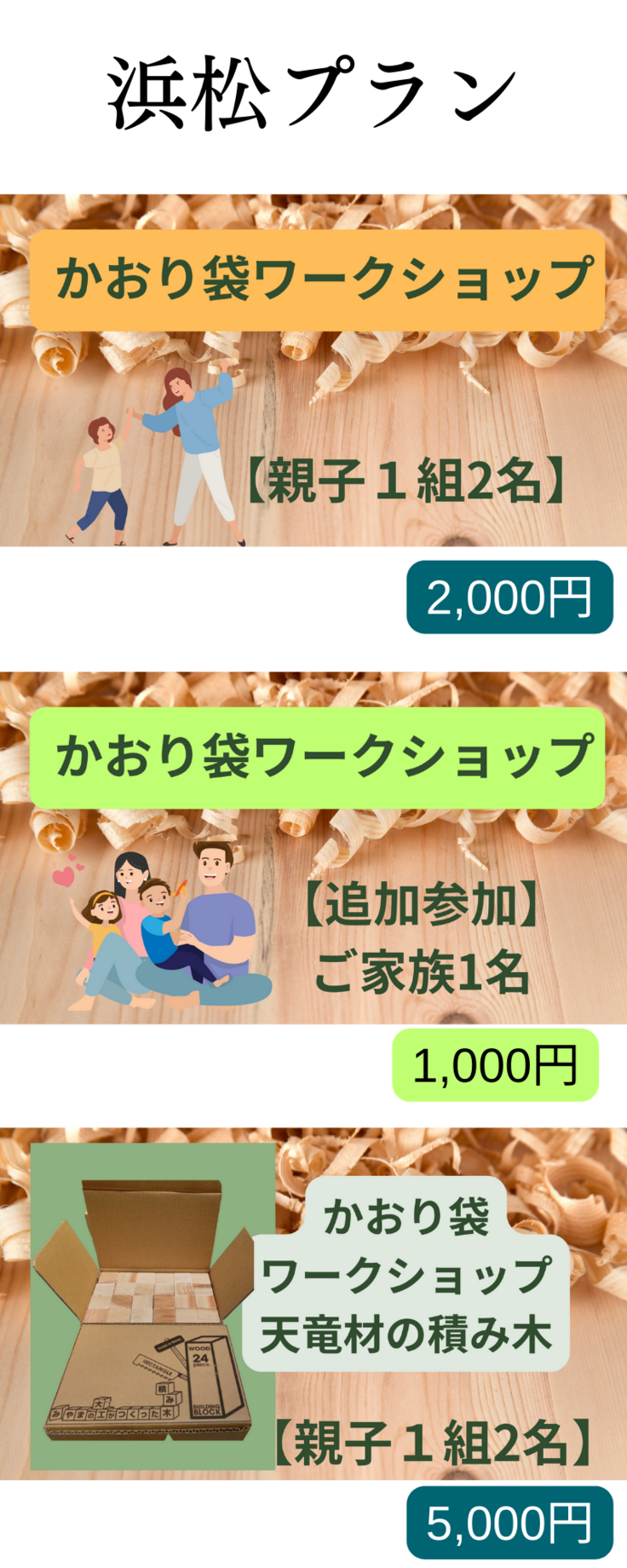 【親子1組2名】天竜材の「かおり袋ワークショップ」に加えて、3歳以上のご家族を追加参加される方に向けてのリターンです。
