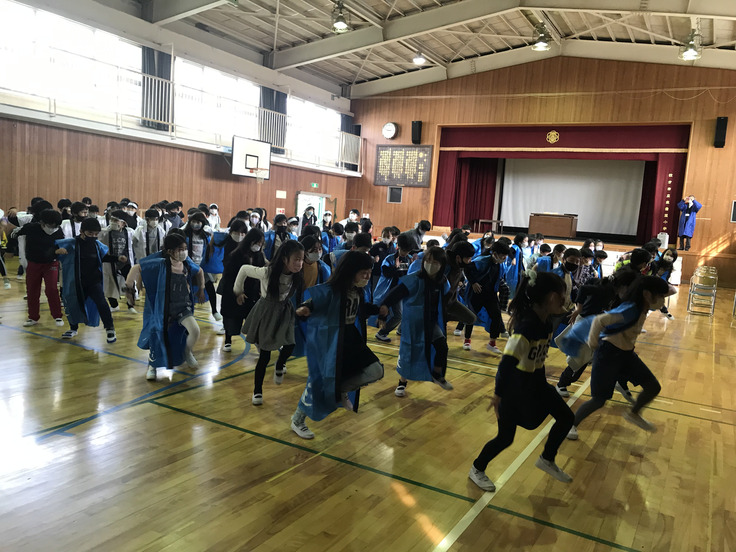 には、プノンペンのクックマ孤児院とオンライン交流を行い、3、4年生が運動会で踊る南中ソーラン、カンボジアは伝統の踊りをお互い教え合いました。