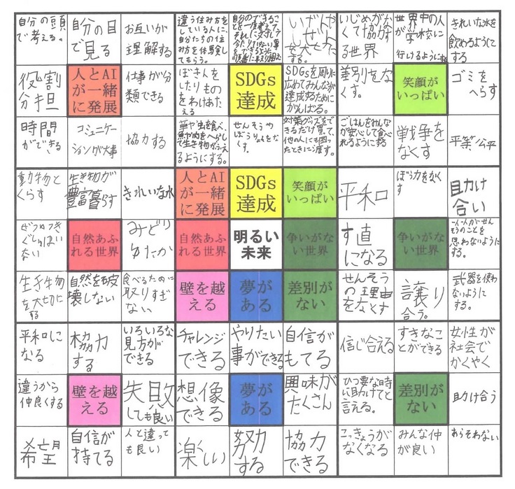 その活動とし、広島サミットメディアセンターにマンダラートで作ったメッセージを展示してもらいました。