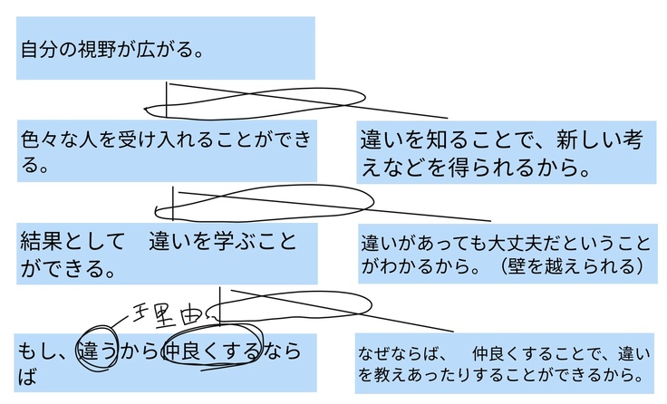 4年生は交流する意義をTOCfe(教育のためのTOC)のロジックブランチを使って考えました。