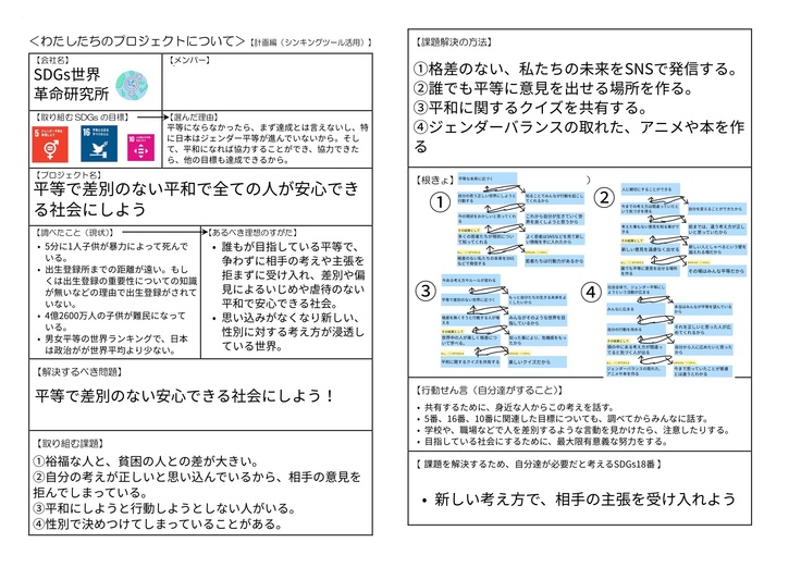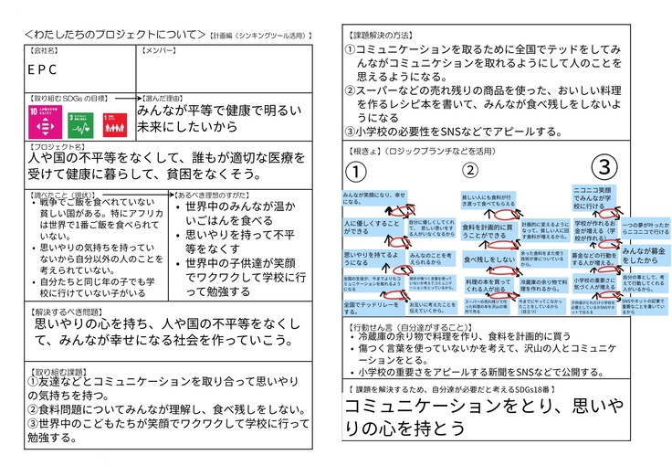 SDGsの問題を解決するために、問題を解決する会社を作り、マインドマップやロジックブランチなどの思考ツールとクリティカルシンキングを駆使して、プレゼンと報告書を作りました。3学期にはLEGO wedoを使ったプログラミングで、問題を解決するロボットを作ります。