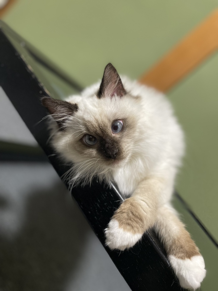 今日は帰宅後にお部屋に行くと飛びついて来てくれて、その後ずっと足元に引っ付いて(足首に噛み付いて)離れませんでした😓