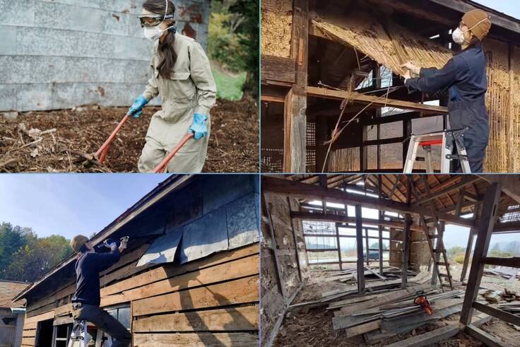 そこで、加工所を作るために私達は購入した土地にあった築80年の馬小屋を自らの手で解体をし始めました。《元あった馬小屋!