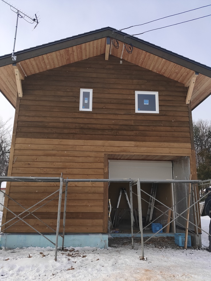 足場まで片付けて中の石膏ボードを少しだけしました✨