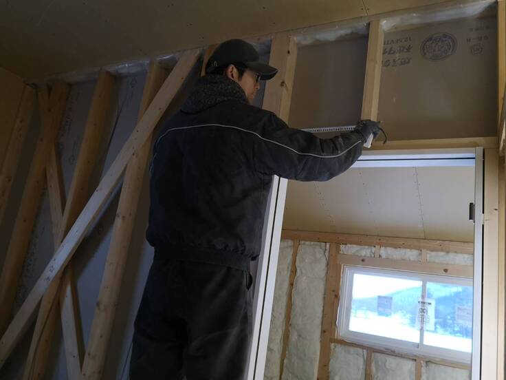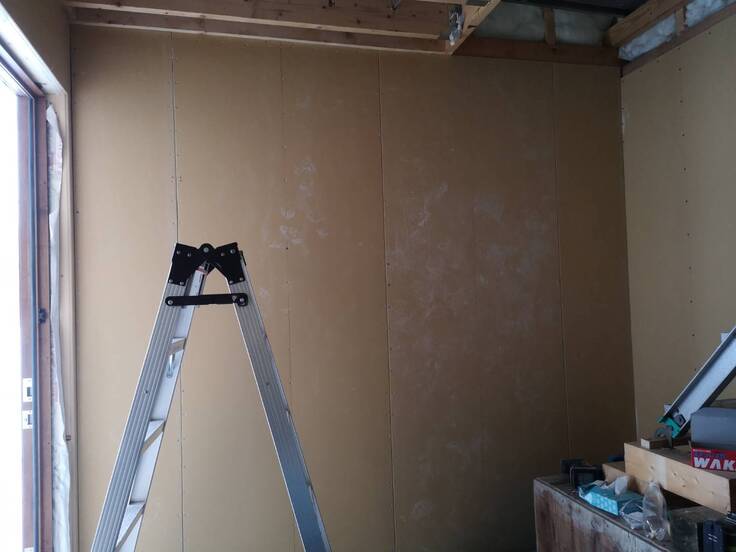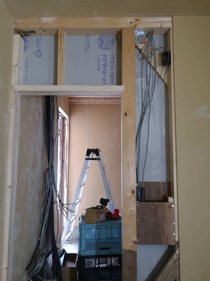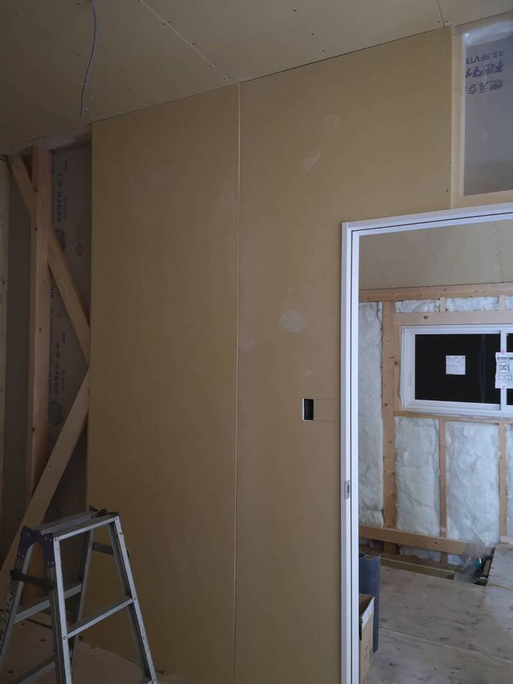 一階の石膏ボードがドアの周り以外全て終わりました‼️