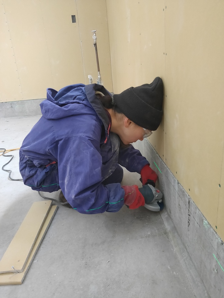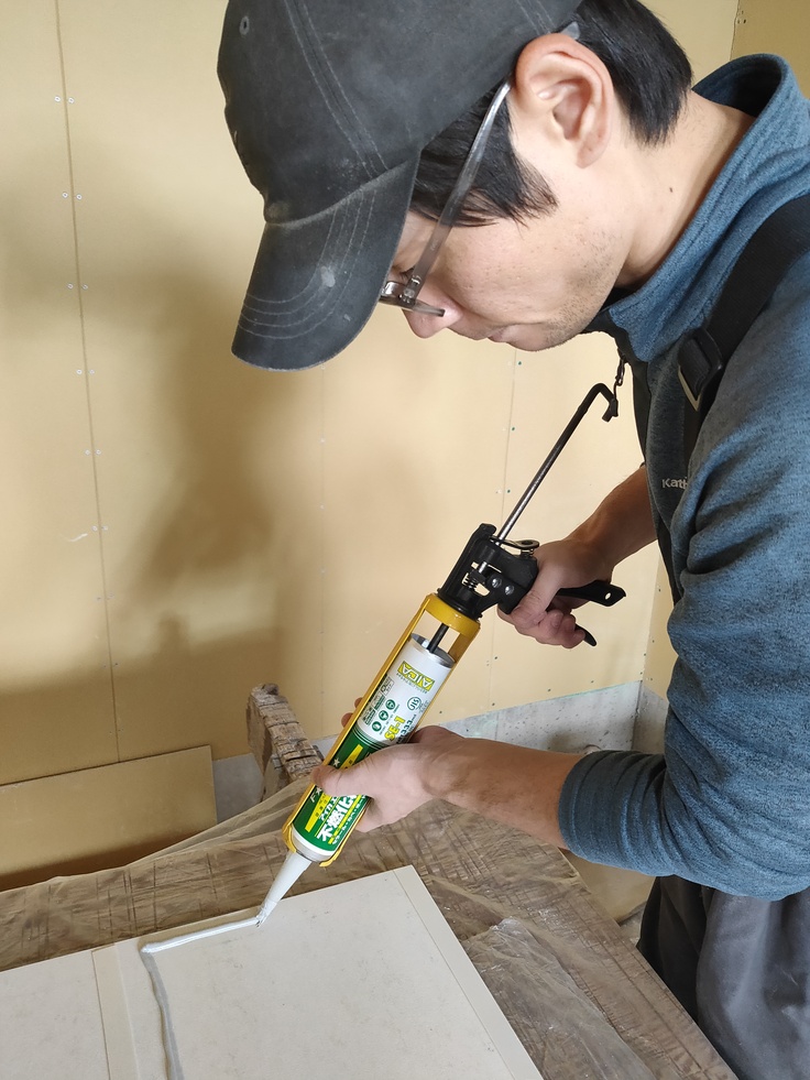夫と大工さんが作業してる間私はコンクリの凸凹を綺麗にしてました!