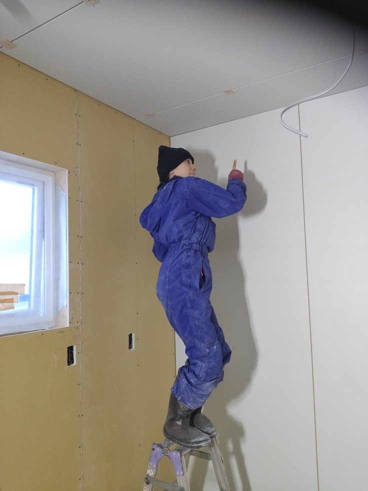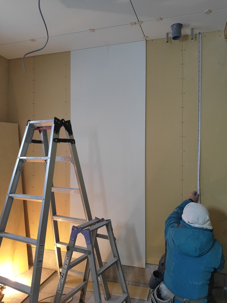 今日も昨日に引き続き化粧ケイカル板の天井貼りからです!