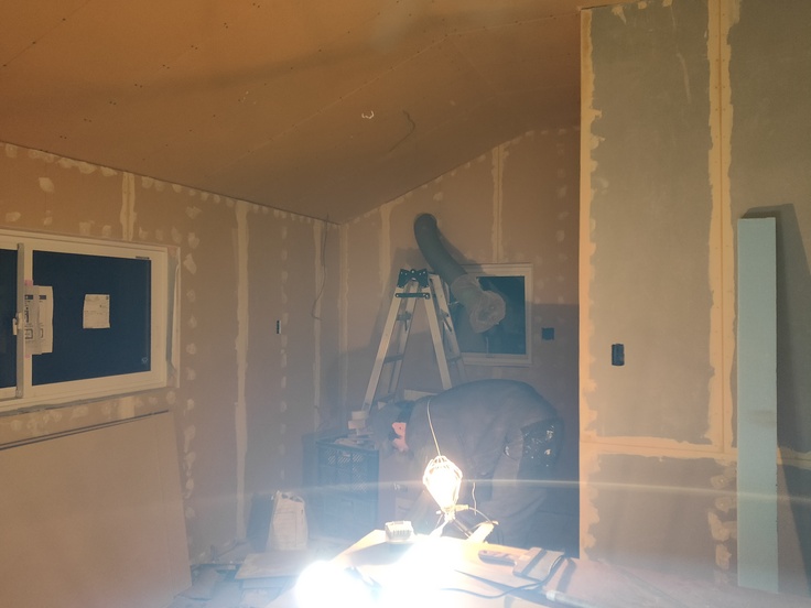 そして2階の事務所は漆喰仕上げするので 一回目の下地をしたんですが