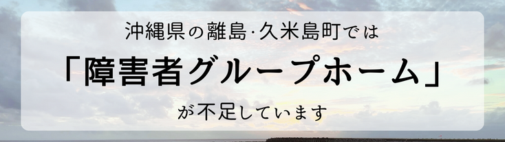 ▼ 沖縄県の離島・過疎地「久米島町」では、人的・社会資源の不足から、障害者の方々がサポートを受けて暮らす 「障害者グループホーム」 が不足しています ▼