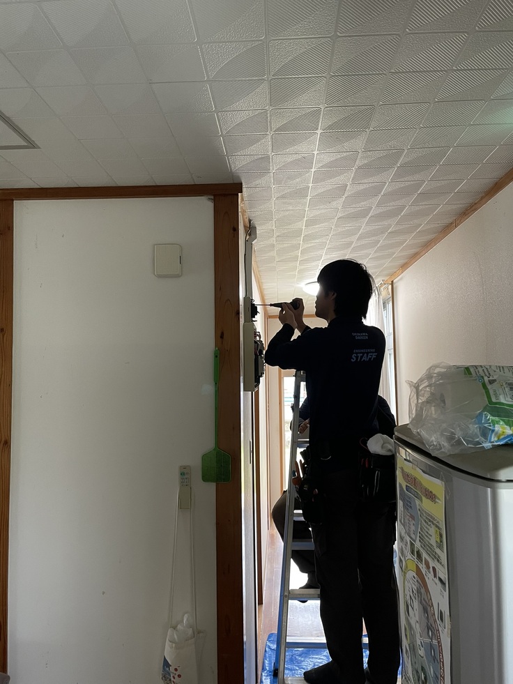1.2棟目となる施設に誘導灯をつけております。