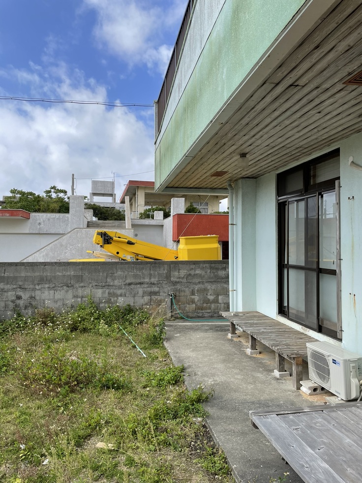 指定申請には影響がないのですが、やはり早めに天井部分はなんとかしたいという思いがあり、雨漏り部分の補修を行っていただける島の左官の方がいらっしゃいました。長年左官をされている熟練のご年配の方とその娘さん(お二方とも職人)がやってくださるようです