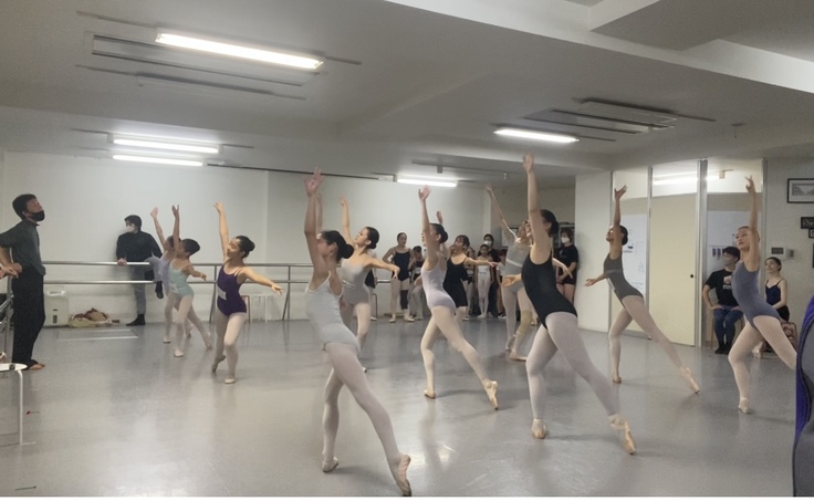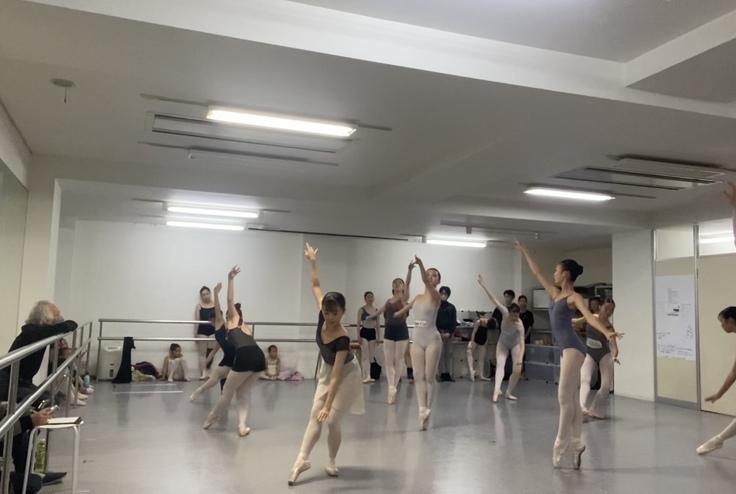 本番まであと2週間ほどになりました。皆様のご支援のお陰で益々ダンサーは張り切り、熱く深いリハーサルが行われています。中尾芸術監督の細かい指導に必死で取り組んでいます。バレエ界の重鎮、漆原宏樹先生にもリハーサルして頂きました。