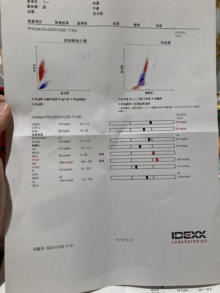 鼻腔内リンパ腫は現状問題は無い状況ですが、腎臓の方は積極的に抗がん剤治療を行っていかなければ行けない状況になっていると、担当獣医師に説明を受けました。
