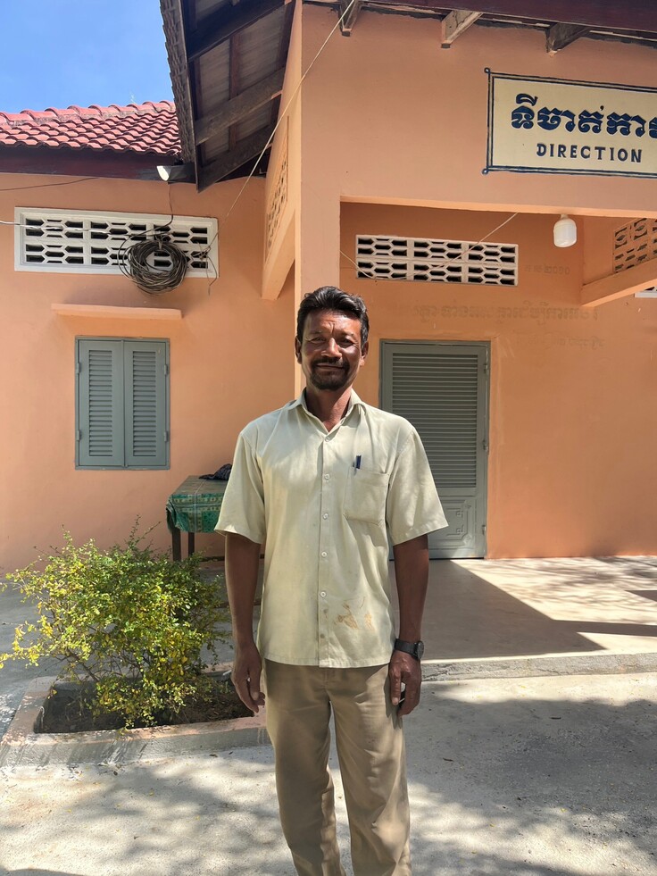 校長先生、通訳をしてくれるコサール先生、チンさん、JECSA代表の松田さん、そして私、全員で「子ども達のために」水道建設について話し合いました。