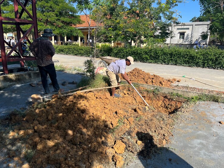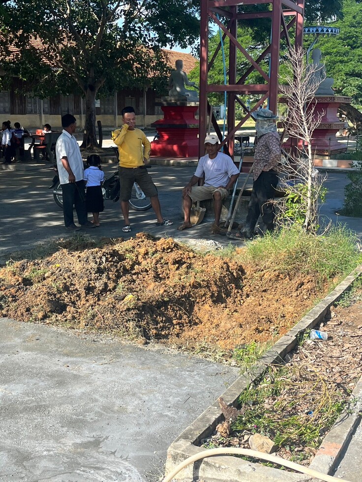 ボンクナー小学校の水道建設は4人の地元作業員の方が行ってくれます。