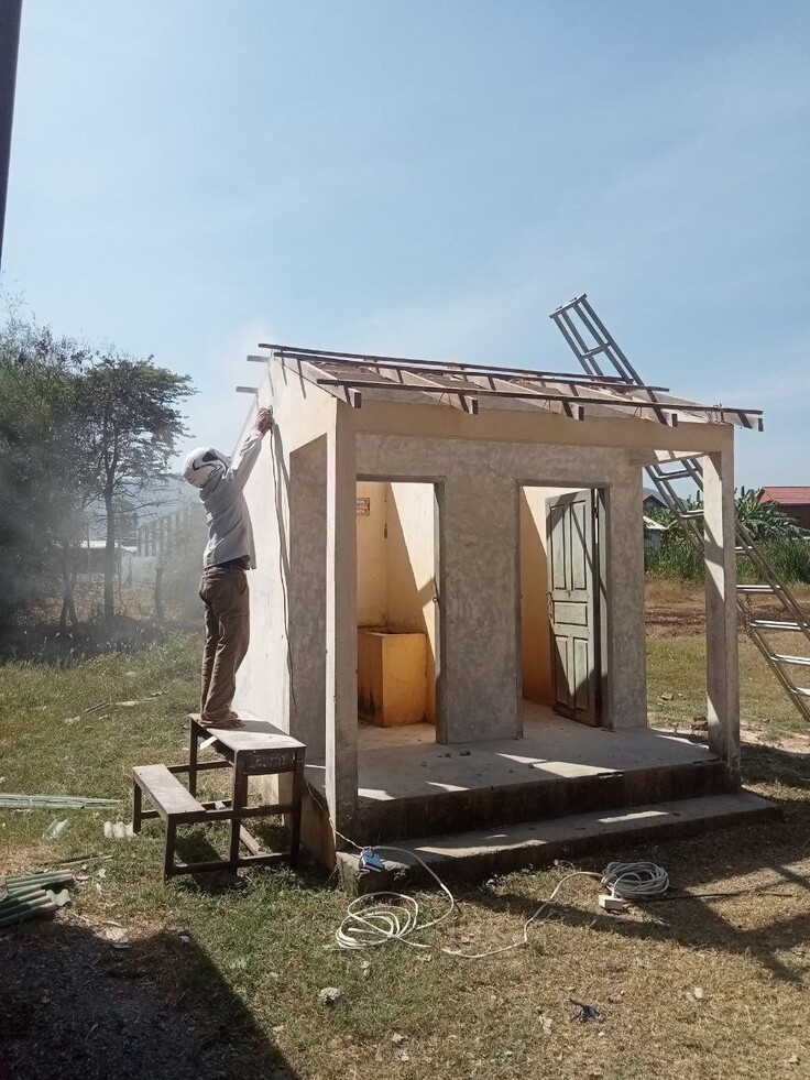 今回は、トイレのペイントと学校から要望があったトイレの屋根の取り換えをチンさんにお願いしております。そしてドア部分の修理はリアックさんにお願いしています。