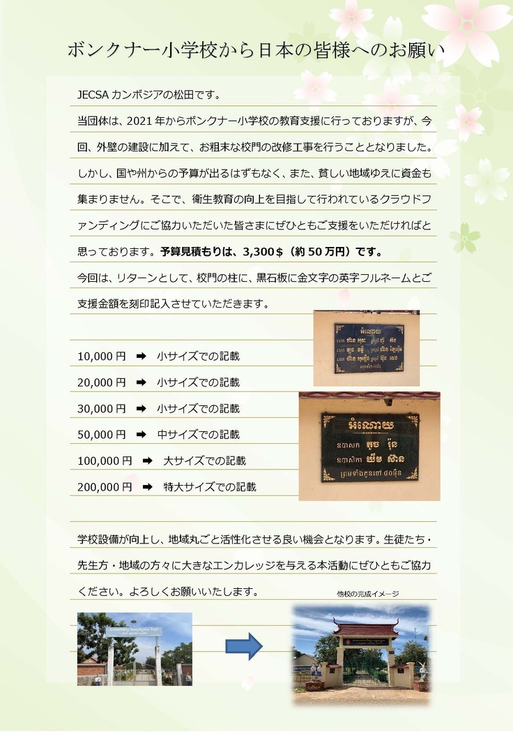 こちらはJECSAカンボジア代表の松田様からのメッセージです
