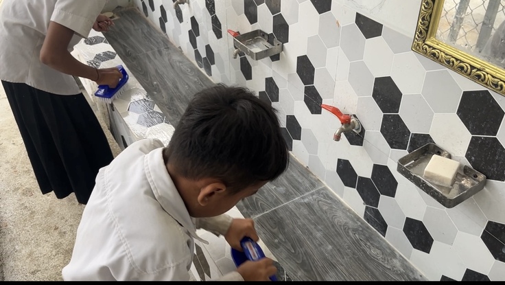 一緒に掃除をして、水道を大切にして、衛生教育を行っていこうと思います