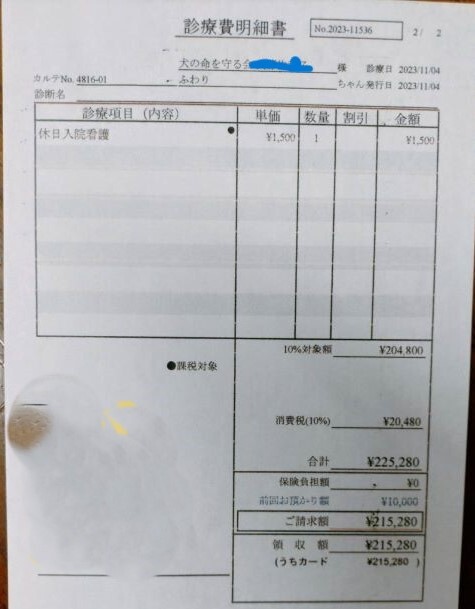 ページ上に掲載している診断書や診療明細書などの資料は全て動物病院から掲載の許諾を得ております。