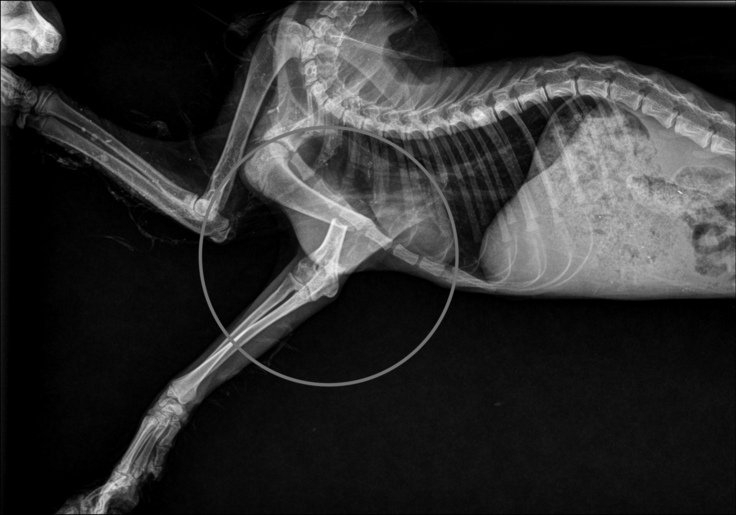 ◯上げていた前足部分は左上腕骨骨折でした。 最初の病院でもセカンドオピニオンの病院でも確認していただいたところ、やはり固定だけではちゃんと歩けなくなる可能性が高い場所だとの診断でした。いつ骨折したかわからないということもあり早く決断をした方がいいと言われましたがとてもとても悩みました。