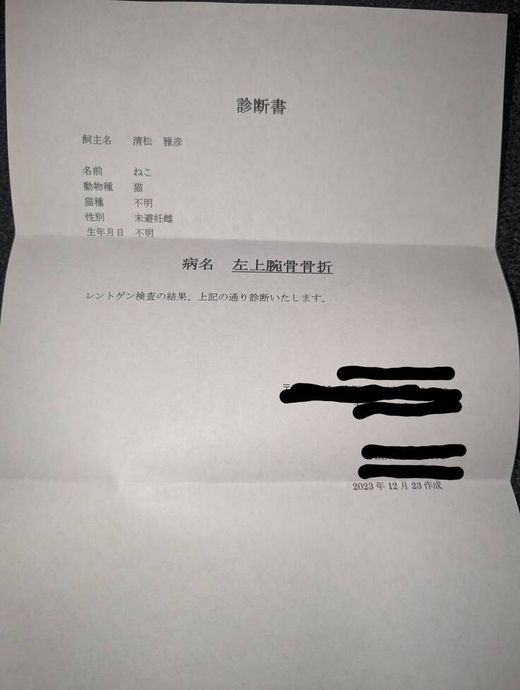 庇っていた前足は骨折で、折れた場所の関係で手術が必要と2つの病院で診断されたので、悩んだ末にこの子の長い猫生を考え手術を決断しました。