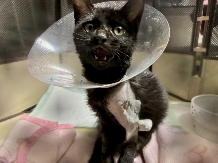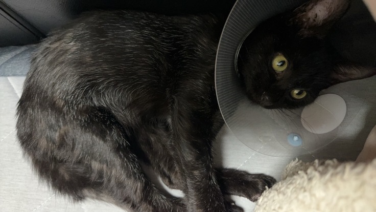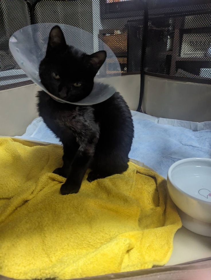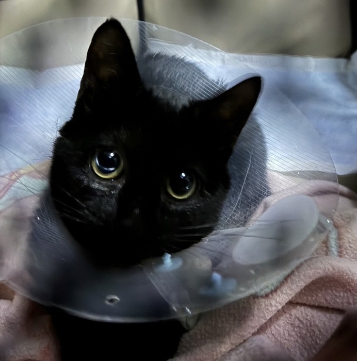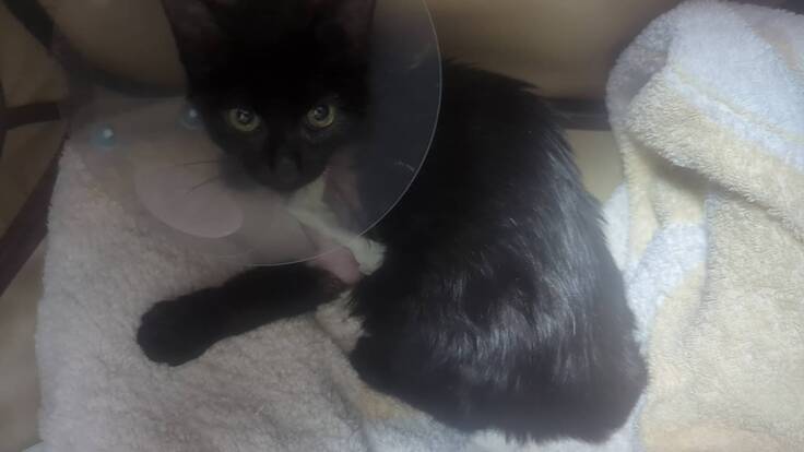 11月29日に子猫は小さな体で頑張って手術を乗り越えてくれ、カラーをつけて大人しく療養してくれました。