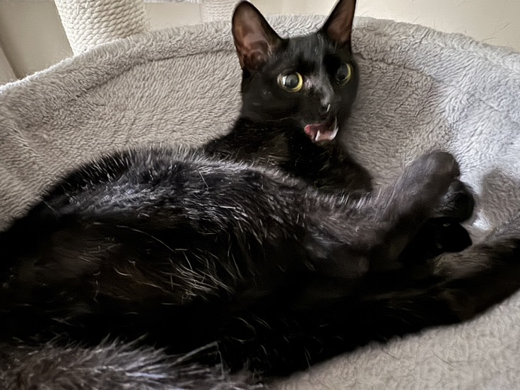 だいぶ我が家でもリラックスしてくれるようになりました。保護当時とくらべると少しは気を許してくれたかな?あいかわらず一度はげた毛は白髪のままですが。