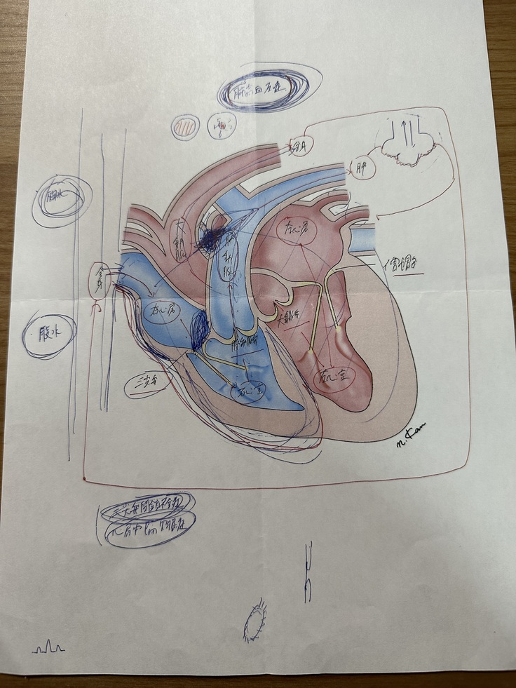 心臓内の右心房と右心室の間にある三尖弁(右房室弁)という弁がきちんと閉じなく欠損孔に向かって血液が逆流していると言われました。