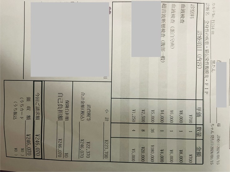 2024年1月15日までかかった治療費