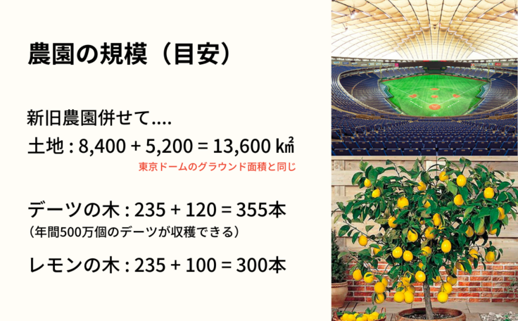 現在、「Luxor Farmの敷地は2箇所あります。それらを併せた、農園の規模(面積)は以下の通りです。